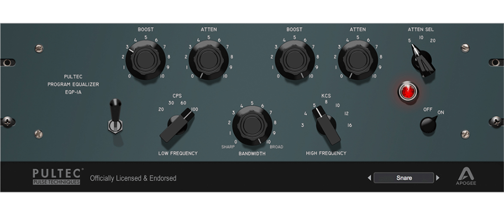 与硬件Pultec EQ制造商Pulse Techniques共同开发,由Pulse Techniques官方授权和认可的Apogee Pultec插件。精确再现了原始硬件,可精确而温暖地雕琢关键的中频频率。