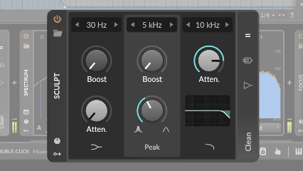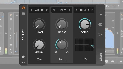 Sculpt 对于更高频率的控制可实现让声音大大增强而不影响音质。在使沉闷的声音变亮时,将boost调高并调整Q值以找到sweet point。您可以在更高频的位置使用高频衰减来减少不需要的频率。