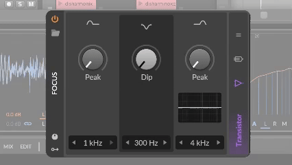 Focus 将 MEQ-5 的功能带入 Bitwig Studio,将无源电路的优势带入数字领域。与 Sculpt 一样,其预设的频率位置使其使用起来快速而简单。只需打开您想要使用的控件,然后调整可用的频段,直到找到你需要的声音。