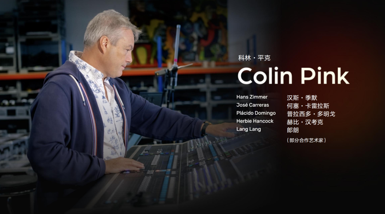 多年来,科林•平克一直作为 FOH 工程师在世界各地巡演,为汉斯,季默(Hans Zimmer)、何塞•卡雷拉斯(José Carreras)、普拉西多•多明戈(Plácido Domingo)、赫比•汉考克(Herbie Hancock)、郎朗和凯瑟琳•詹金斯(Katherine Jenkins)等音乐巨星服务。他经常担任全英音乐奖的音响设计师,也是MTV欧洲音乐奖和BBC 音乐奖的现场音响总监。平克还是2012年奥运会现场音响运营团队的负责人。