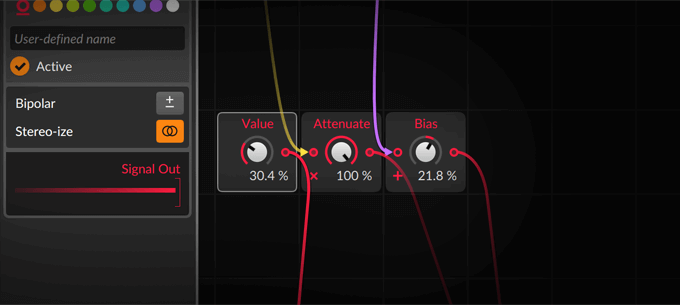 3. 在 Level 类别模块中,Value、Attenuate 和 Bias 有一个名为 Stereo-ize 的 Inspector 参数,它会反转用于右声道操作的值。