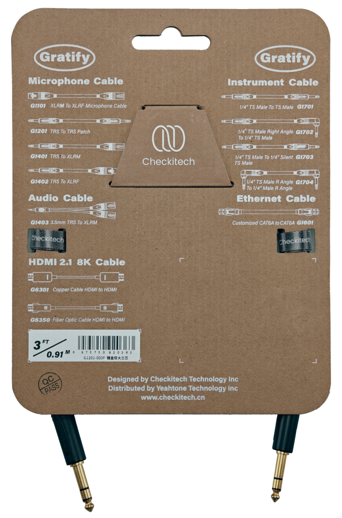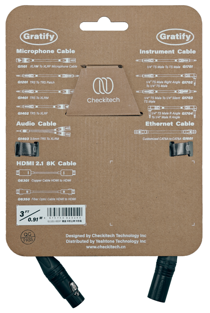 Checkitech恰怡称心系列话筒线使用型号为G1101型定制线缆,适用于传输平衡信号的设备,例如监听音箱或麦克风。G1101线缆拥有高还原度的声音特性,螺旋缠绕的屏蔽层不仅具备良好的抗干扰性,同时还能让线缆本身保持柔软,以便用于不同的应用场景。