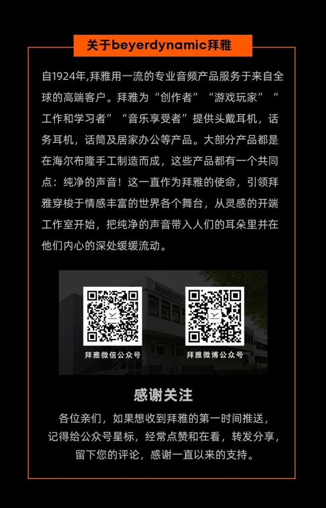 为了让大家有更丰富的体验,我们还特别邀请了资深音乐爱好者【强叔】和媒体人【撩数码】。他们将以专业的视角和独特的见解,为大家分享对耳机的深刻感悟,带领大家一同领略拜雅Made in Germany 和Designed in Germany产品的卓越之处。除此之外,活动现场还准备了丰富多样的奖品和精致美味的茶歇,让您在享受音乐的同时,也能收获满满的惊喜。