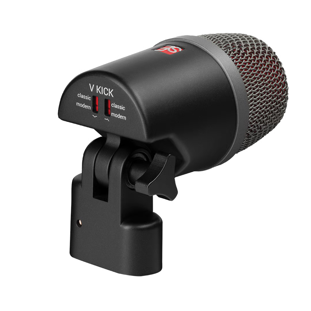 VKICK是同类产品中最具竞争力的型号,用于底鼓或其它大型鼓拾音使用,紧凑通用,低频响应精准优秀。其集成的旋转接头能够适配绝大多数麦克风放置需求,全新研发的超心形指向动圈音头提供专门为底鼓定制的声音特性,可以通过在麦克风后侧使用两个独有的音频调节开关进一步设计你的音色。从温暖和经典到现代和有力,V KICK为你提供所需的任何底鼓声音。