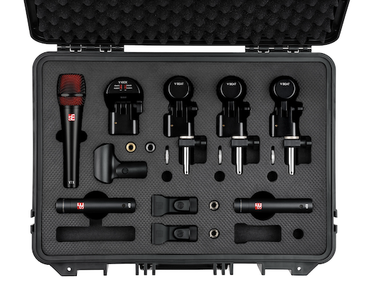 V PACK ARENA BLACK 包含一支用于底鼓的 V KICK、三支用于嗵鼓的 V BEAT 和 V CLAMPS、一支用于小军鼓的 V7 X 和一对用于顶置的 sE8 小振膜电容麦克风。所有麦克风和配件都被安全地安置在一个坚固而独特的塑料航空箱内,箱内还有一个空位,可放置您最喜欢的高镲帽麦克风。这款全黑版本搭配红色防风罩,在任何鼓组上都会引人注目!