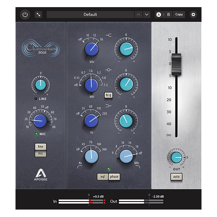 Clearmountain’s 8068 插件配备了调音台极具音乐感的 3 段均衡器,比经典的 1073 提供了更多的均衡点,并且具有本质上宽阔且富有音乐感的响应,非常适合用于塑造鼓、人声和弦乐的音色。高 Q 值模式在需要时提供了额外的精确度。