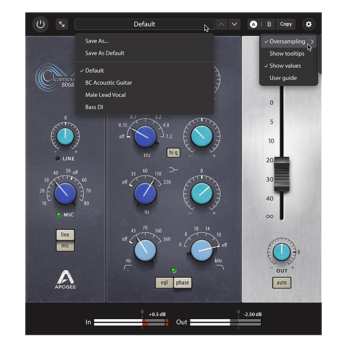 - 麦克风模式的自动增益:即使在推动饱和度以增加质感时,也能确保电平的一致性。