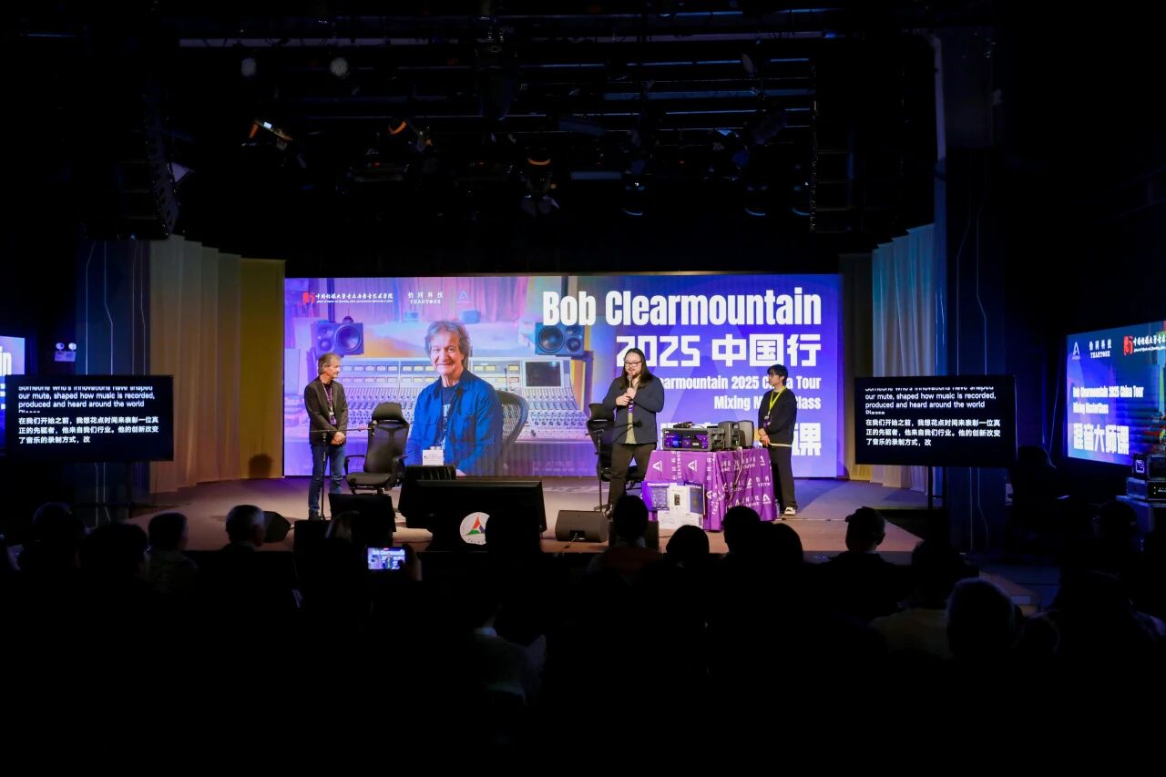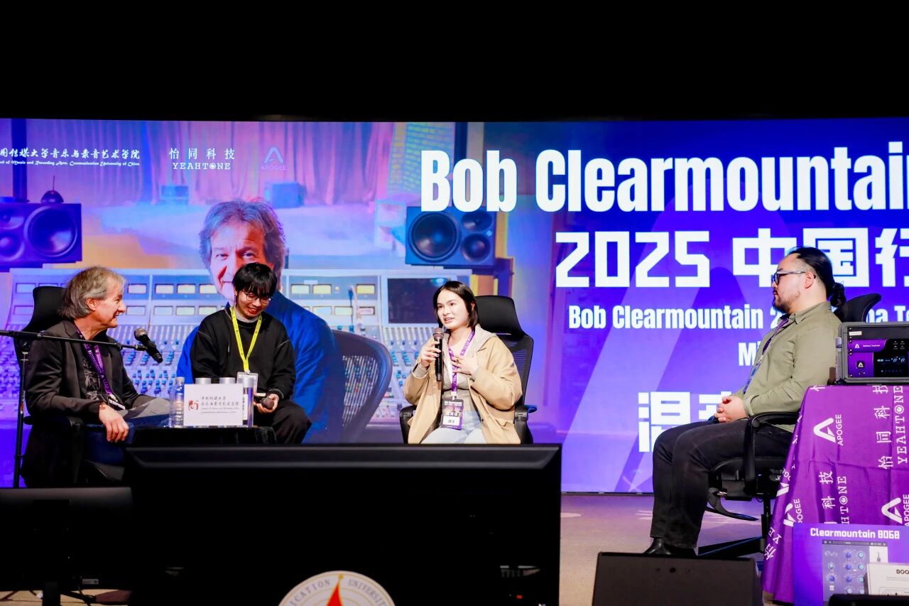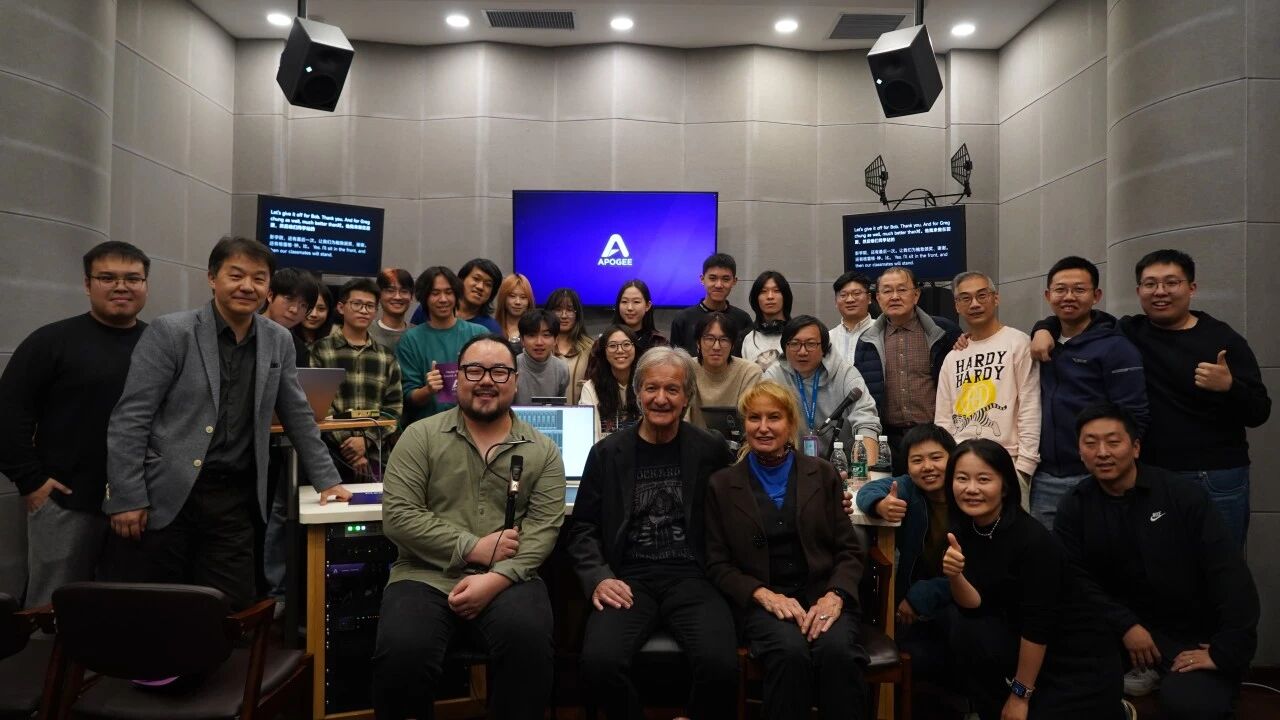 世界著名混音艺术家、录音工程师 Bob Clearmountain 中国巡回交流活动近日圆满落幕。本次活动由 怡同科技 特别邀请,携手 Apogee Electronics 品牌共同呈现。作为Apogee传奇声学理念的缔造者之一,Bob与其妻子、Apogee联合创始人 Betty Bennett 一同来到中国,先后走进 中国传媒大学、上和弦音频学院、北京电影学院 以及 香港演艺学院 四大业界知名学府和标杆机构,以四场主题鲜明的分享会、工作坊及现场演示,为国内音频从业者、音乐及影视创作专业师生带来了一场贯穿理论与实践的声音美学盛宴。