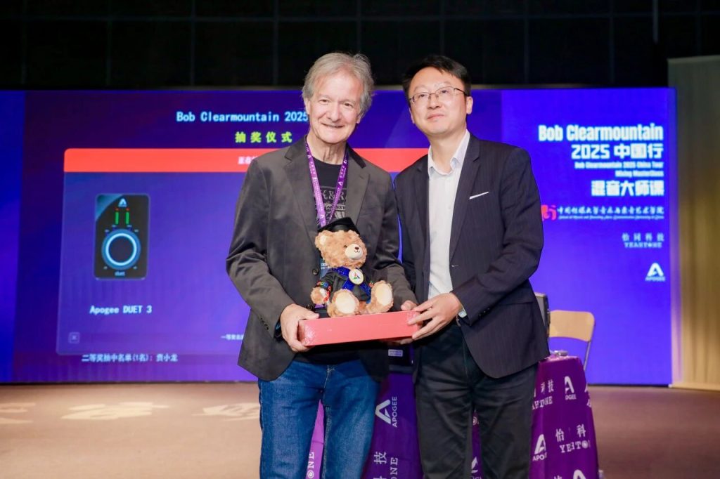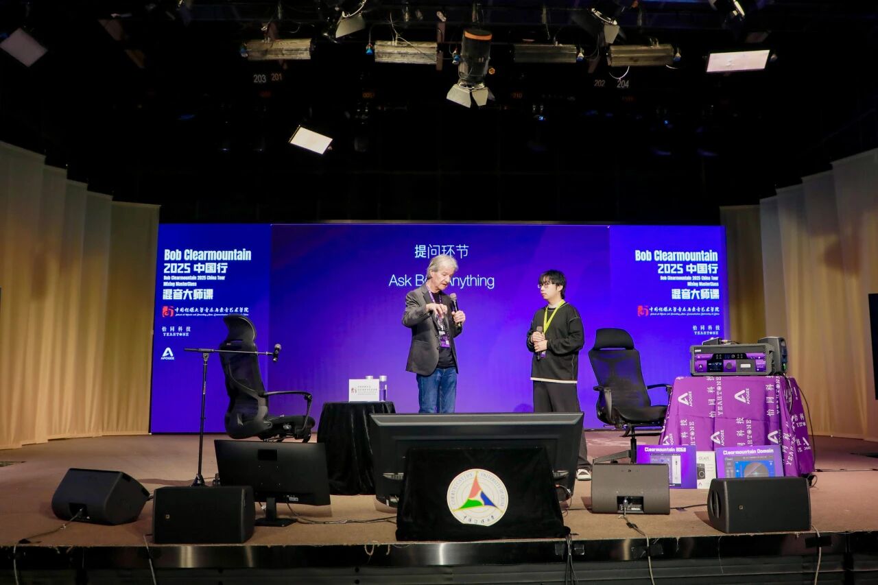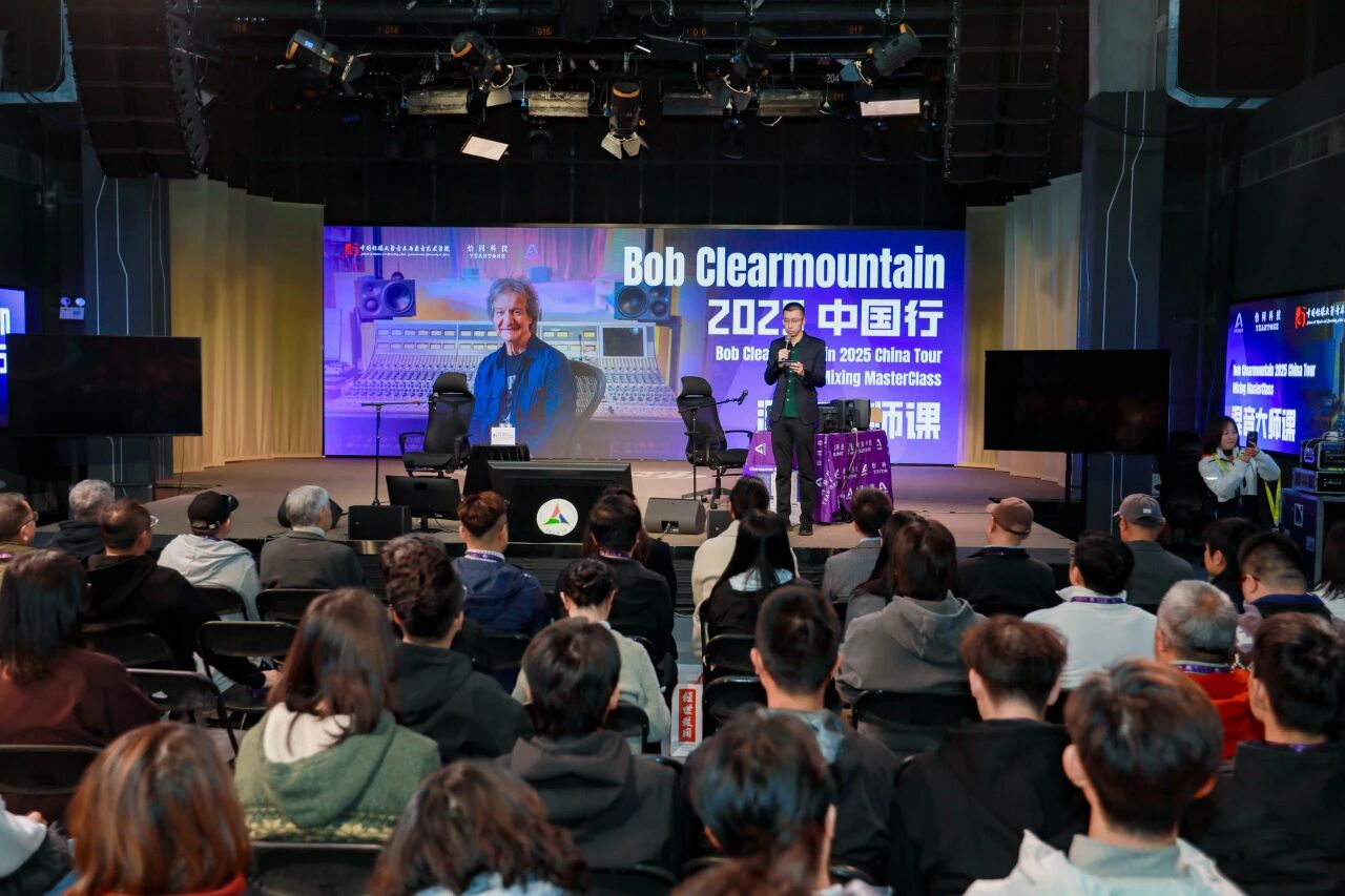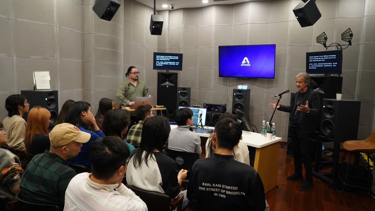 世界著名混音艺术家、录音工程师 Bob Clearmountain 中国巡回交流活动近日圆满落幕。本次活动由 怡同科技 特别邀请,携手 Apogee Electronics 品牌共同呈现。作为Apogee传奇声学理念的缔造者之一,Bob与其妻子、Apogee联合创始人 Betty Bennett 一同来到中国,先后走进 中国传媒大学、上和弦音频学院、北京电影学院 以及 香港演艺学院 四大业界知名学府和标杆机构,以四场主题鲜明的分享会、工作坊及现场演示,为国内音频从业者、音乐及影视创作专业师生带来了一场贯穿理论与实践的声音美学盛宴。
