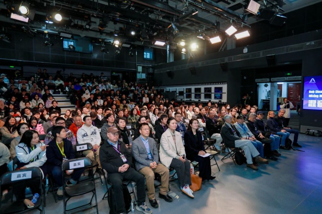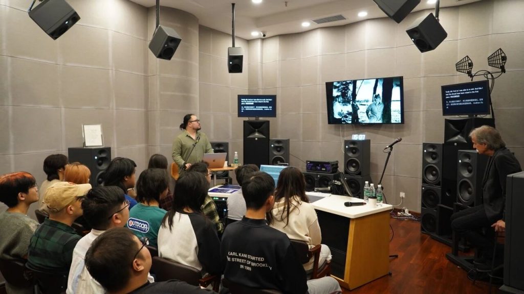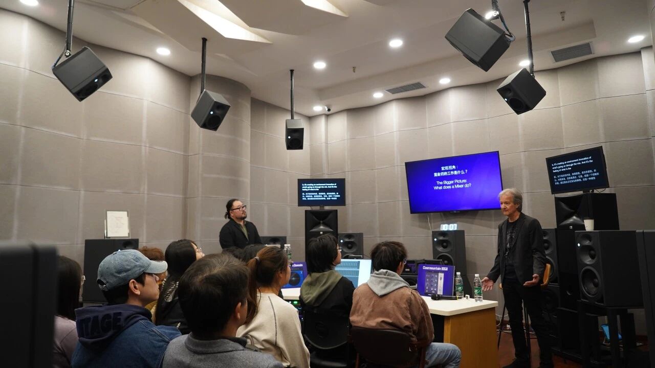 10月23日,交流第三站走进北京电影学院。依托在音频创作领域的专业积淀,校方特意打造“核心精讲+全景共享”的双场地交流模式——将杜比全景声音乐录音棚设为核心互动区,Bob在此与核心师生展开近距离深度研讨;同时通过高清音画信号实时传输至声音实验室,让更多师生及业界同仁同步感受大师分享的魅力,这种“精准互动+广泛覆盖”的设置,既保障了深度交流的质量,又最大化释放了活动价值,充分展现了北京电影学院在音频教学与行业交流中的专业布局。此次分享聚焦“专业混音核心技艺与创作思维”,精准覆盖录音艺术、音频制作等专业师生及业界混音从业者的核心需求。