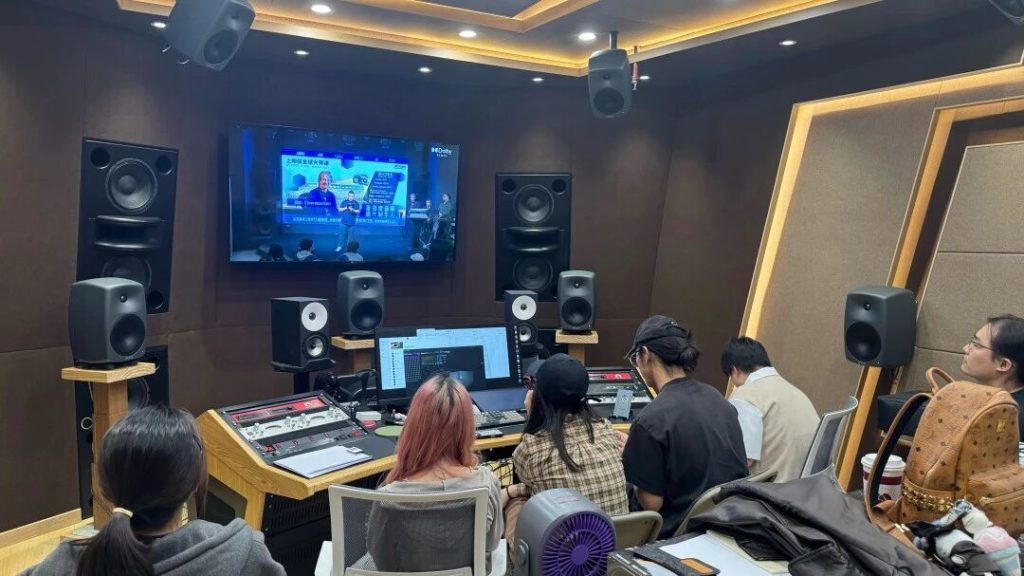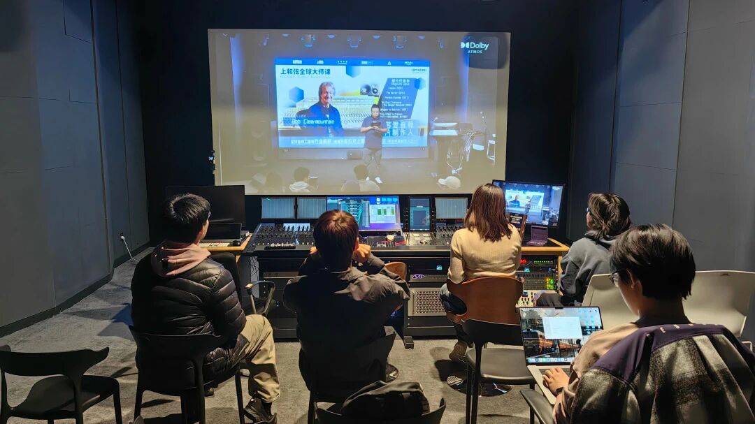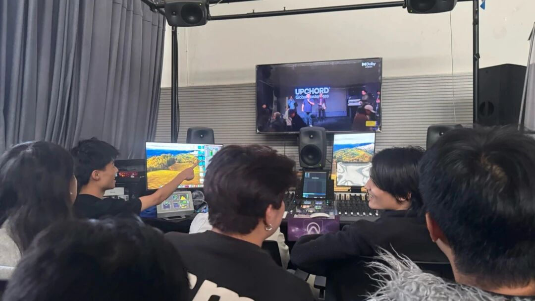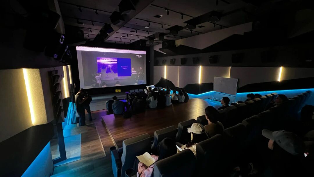 在本次活动中,上和弦音频学院不仅将主会场打造成影院级沉浸体验,同时创新设置了 “Dolby 全景声同步分会场”——通过全链路高清信号传输,实现主会场与分会场的实时转播,让身处不同教室的师生也能同步体验大师现场演示,跨越物理空间的限制,共享顶尖声学交流平台。