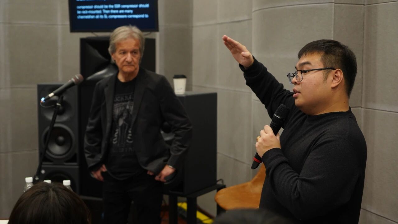 Bob结合自己操刀的众多经典流行、摇滚作品混音案例,详细讲解了多轨素材的频率避让技术,以及不同风格作品中动态范围的控制技巧。他特别以摇滚曲与抒情曲的混音差异为例,说明“混音风格必须与作品音乐类型高度匹配,摇滚作品需保留低频冲击力但避免乐器音色重叠,抒情作品则要通过细腻的音色处理强化情感张力”。