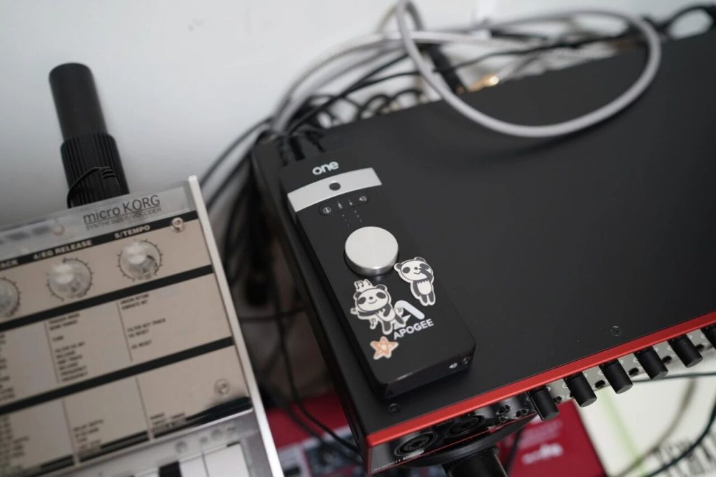 在设备选择上,陈麒元始终将音质与实用性置于首位,以确保能够精准捕捉音乐的每一个细节,从创作构思到最终录制,全程保障高质量输出。他对 Apogee 品牌的声卡情有独钟,其卓越的音质表现与便捷的便携性,让他在任何场景下都能迅速投入创作,高效且出色地完成录音任务。