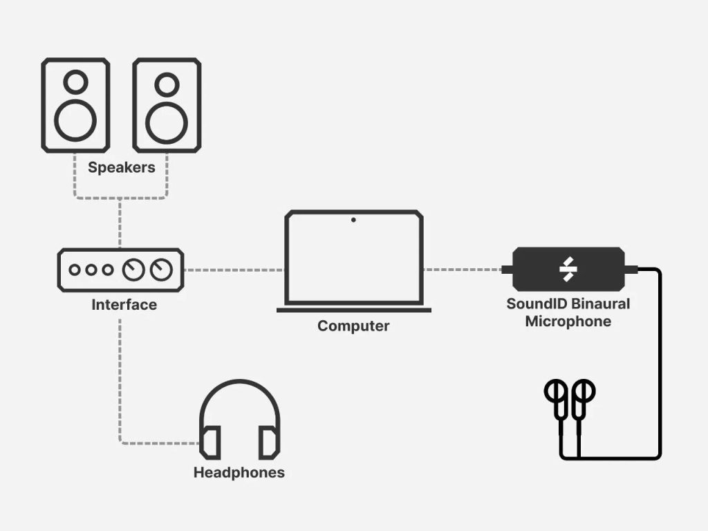 第二步,准备好头戴式耳机,在待测量的空间内连接好SoundID双耳入耳式测量麦克风。