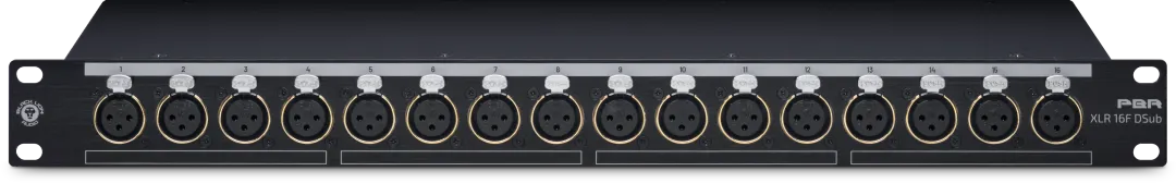 PBR XLR 16F DSub 在仅 1U 的机架空间内实现了极其稳固的 16 点位母头 XLR 转 DB25 路由转换。
