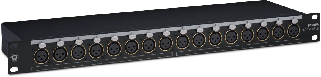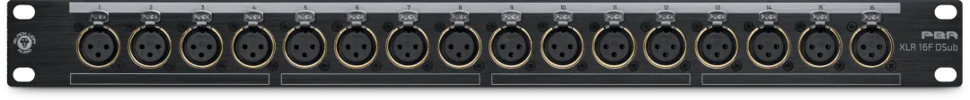 PBR XLR 16F DSub 是一款16 接口的母头 XLR/DB25 接线盘,是消除录音室线缆混乱的理想方案。