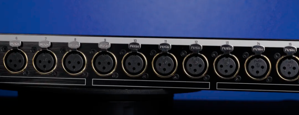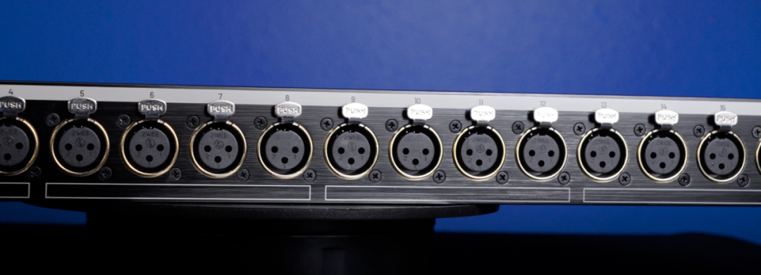 它配备了 16 个发烧级镀金 XLR 接口,确保了极佳的信号传导能力和清晰度。后置的两个 DB25 接口非常适合连接调音台或音频接口,并牢固地安装在内部钢制背板上,以防止频繁插拔造成的磨损。
