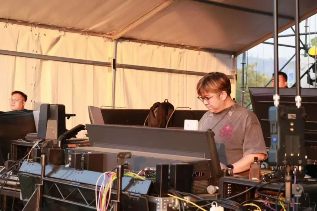 比如现场演出最常见的困境:彩排试音不能开PA。这种情况下,常规监听完全失效,混音师只能靠经验预判,很容易出现误差。付威有自己的解决方案: