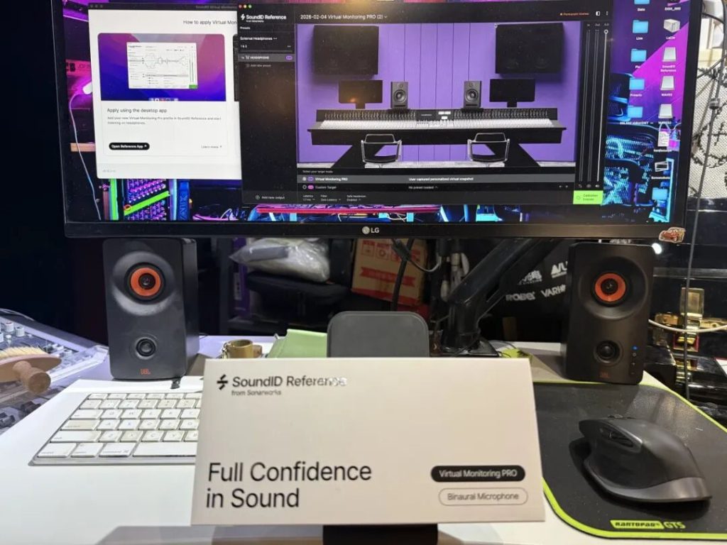 Shure 1840 耳机、Pro Tools HDX 系统,搭配 Mac 工作平台,是他随身携带的“作战装备”,覆盖混音、录音监听与母带参考等核心用途。而在复杂多变的监听环境中,Sonarworks VM PRO 成为他保持判断一致性的关键工具。