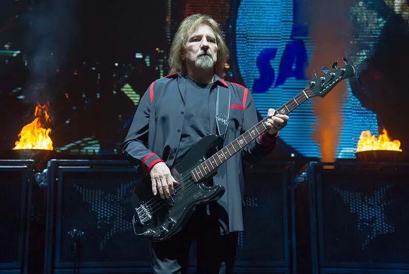 在 Geezer Butler 的贝斯箱前,用的是sE的铝带麦克风 VR1 。