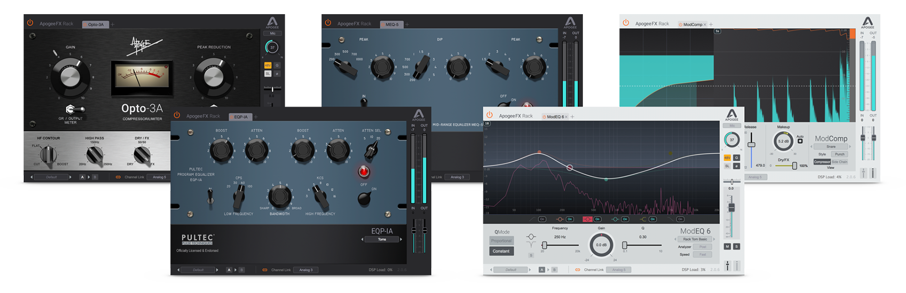 Ensemble内置高性能 DSP数字音频处理器,不仅为混音台界面提供零延迟处理支持,还支持 Apogee全新开发的Apogee FX Rack效果器插件,其中更是包含同Pultec®公司共同研发的高品质经典EQ建模效果器。得益于Apogee独特的DualPath DSP-Native技术,Apogee FX Rack 插件既可以在Ensemble的硬件DSP上运行,也可以作为 MAC上的本机插件运行。Apogee的DualPath技术开辟了全新的简化工作流程,具有超低的延迟响应,全面提升插件处理效率。