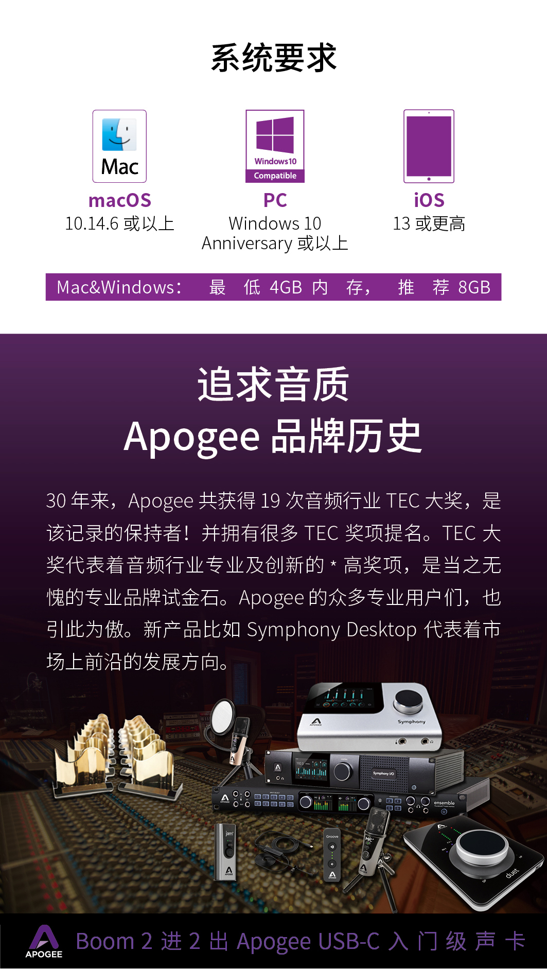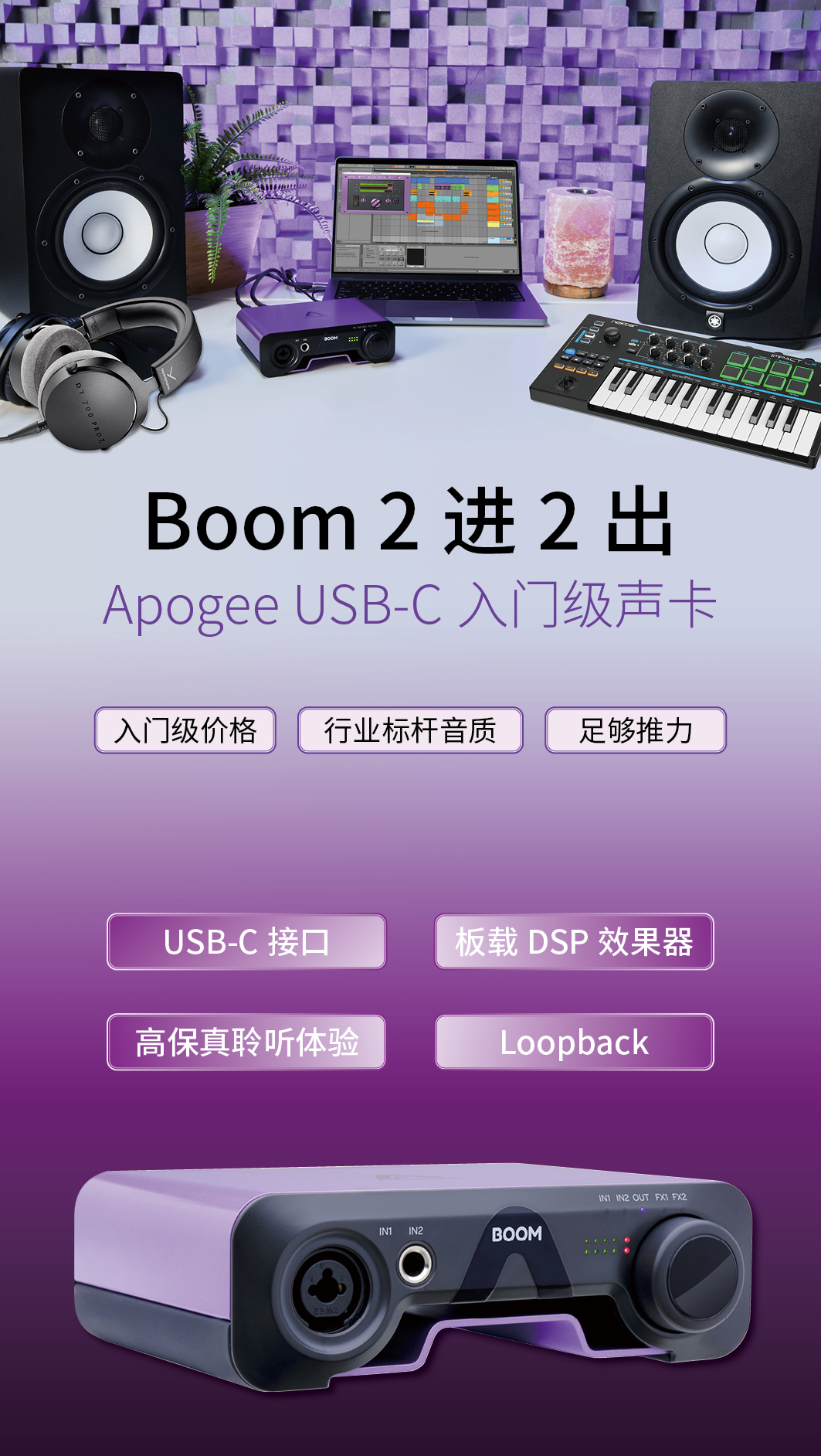 “Boom是为充满激情的创作者制作的,他们不折不扣地追求自己的创造力。无论你是音乐家、播音员还是直播者,Boom将激励你把你的项目提高到一个新的水平,Apogee的传奇工作室质量的声音,”