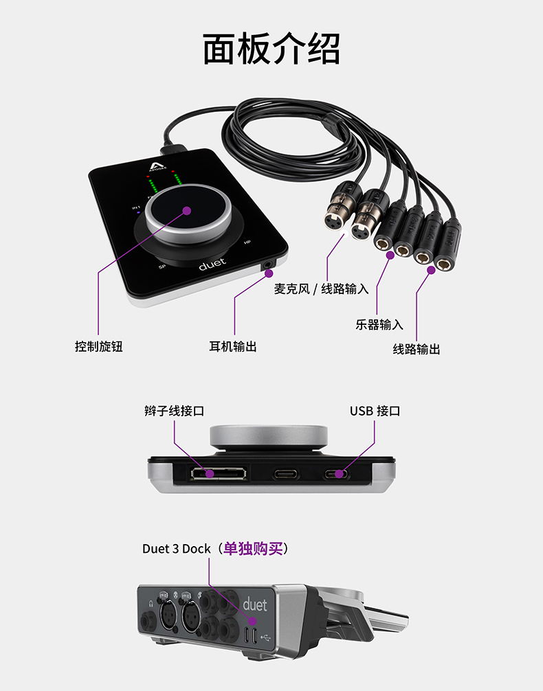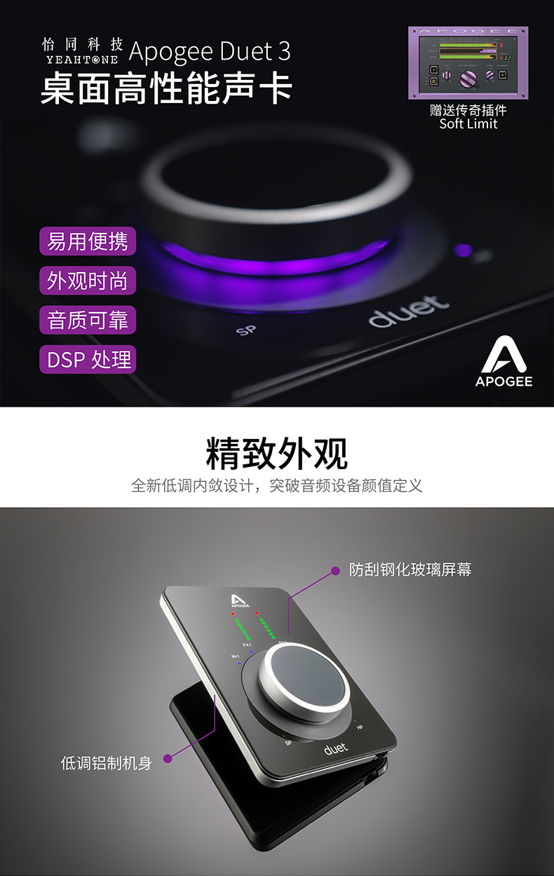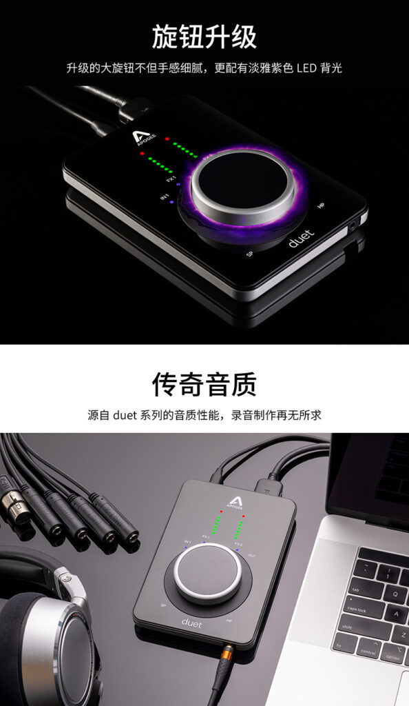 卓越的音质:包括巧妙设计的AD/DA转换、顶级麦克风前置放大器、数字时钟、模拟电路和近乎理想的电源管理技术,以达到设计与硬件的完美结合,Duet产品的音质并不是与生俱来,而是以上诸多要素的精华与结晶,诞生出该系列产品无与伦比的音质。
