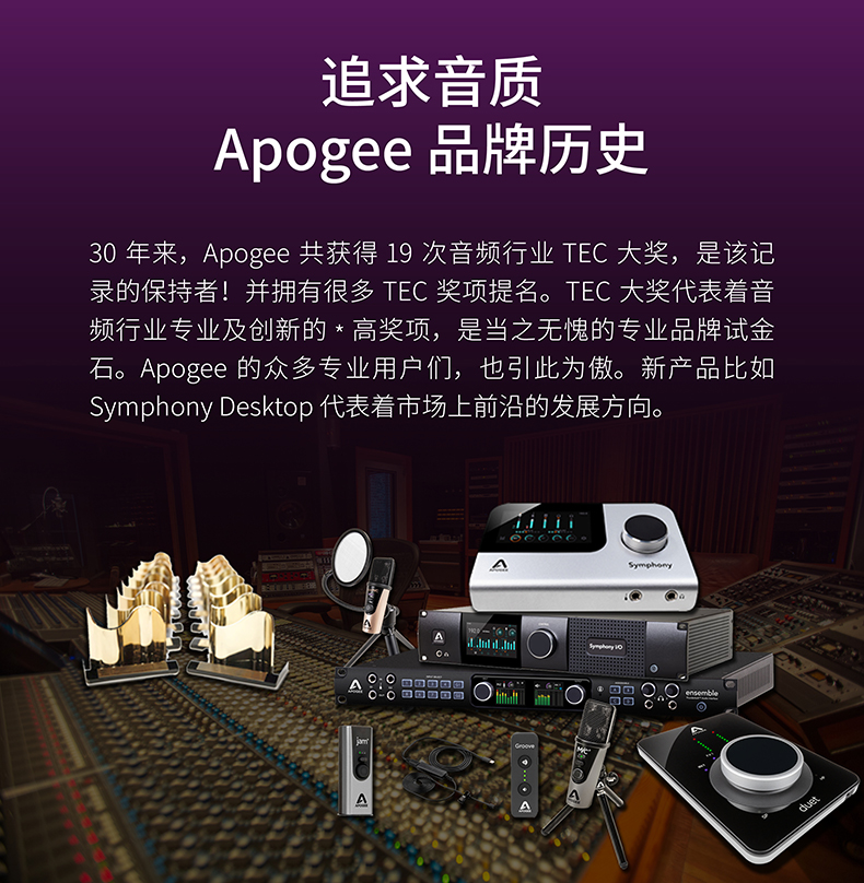 - 延承顶级的Apogee转换性能及麦克风前置放大器