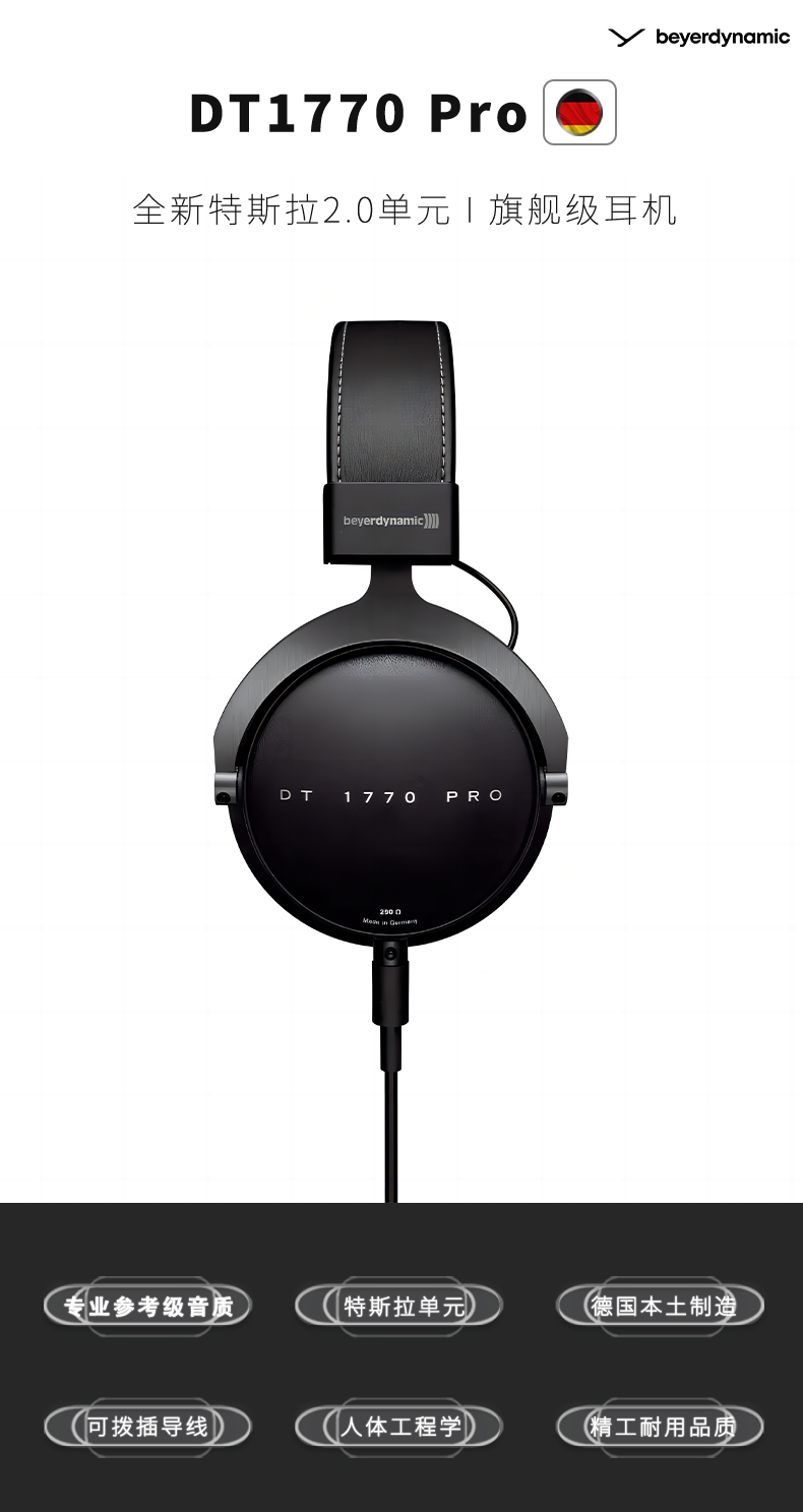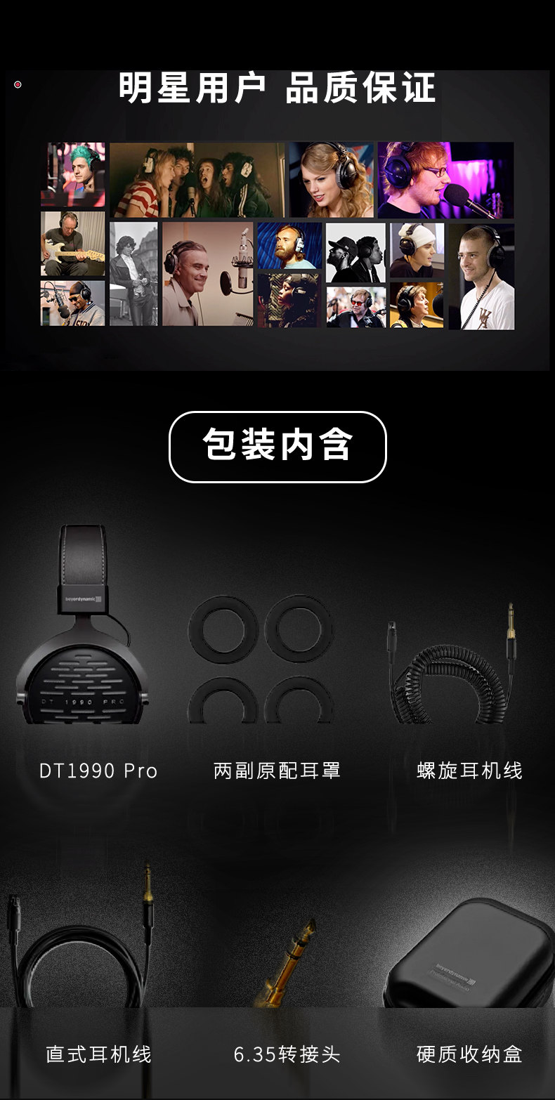 - 柔软且可更换的垫子,适合长时间的录音室工作