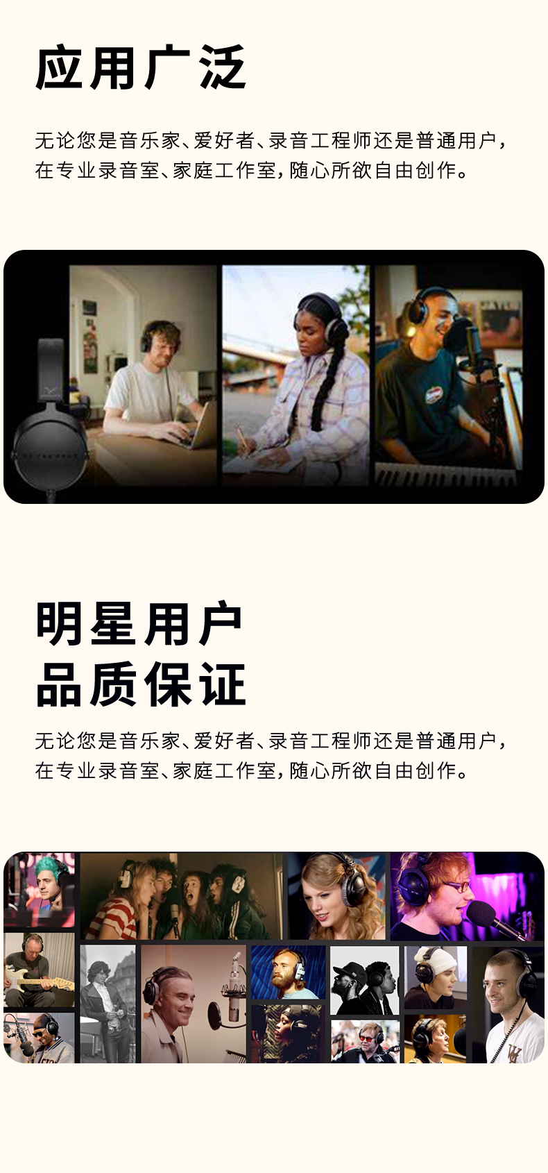 - 用于录音、监听、关键性聆听、混音和母带制作的专业耳机