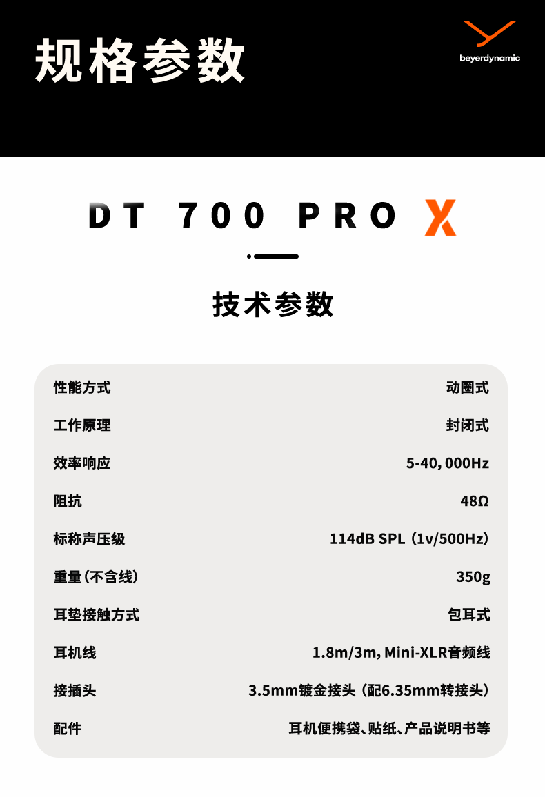 DT 700 PRO X是一款封闭式录音室耳机,用于录音及监听。信赖的声音,优秀的表现。全新的STELLAR.45驱动单元,天鹅绒耳罩、可更换的头梁软护垫,弹性钢制头梁,德国制造,经久耐用。