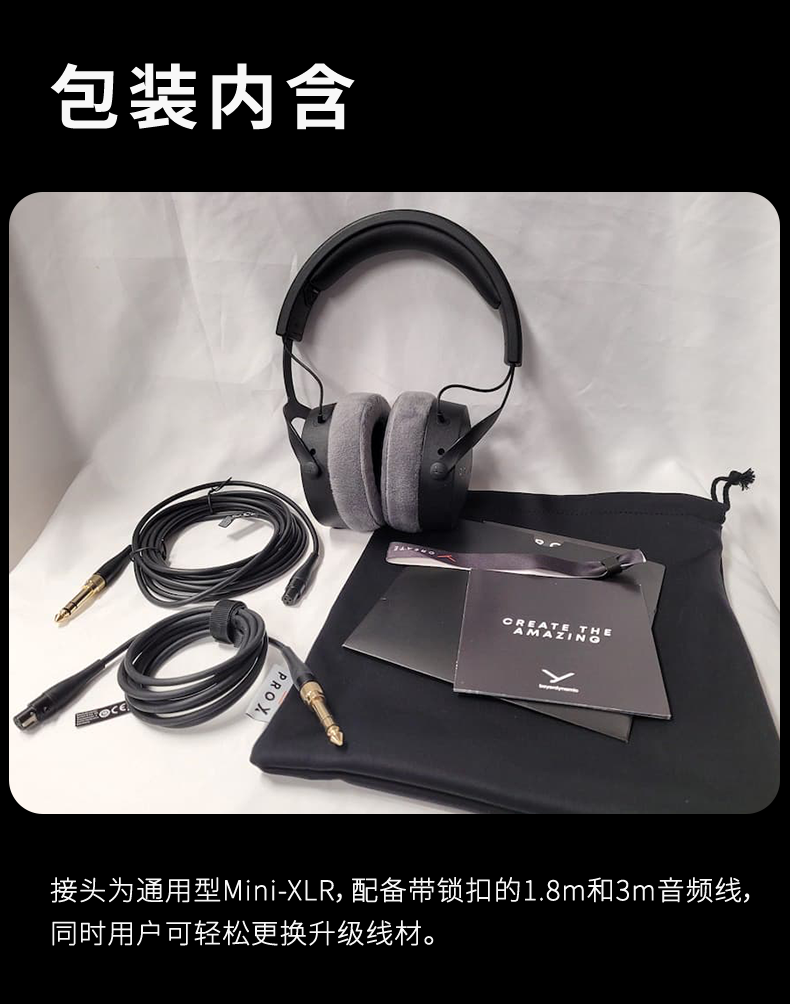 - 线长及类型:3 或1.8m 线缆,均为插拔式,3针迷你XLR插座