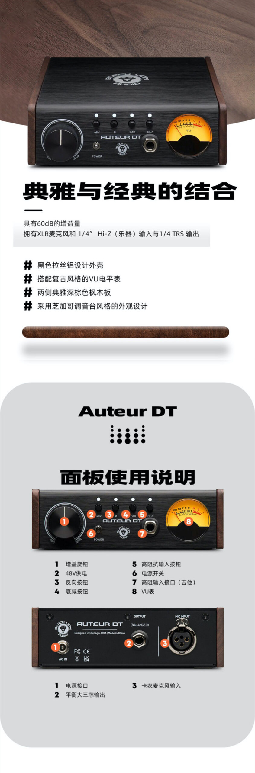 - 拥有复古音色的桌面式麦克风前级放大器,优秀的性能适合捕捉所有声音细节