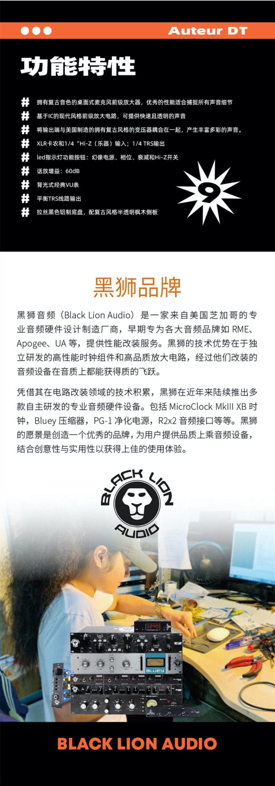 Auteur DT的存在是为了捕捉您录音中的的一切细节,事实上,Black lion audio制作产品的最终目标是为了让您音乐作品的潜力能够充分的展现。