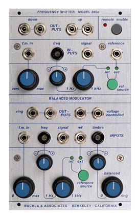 285e模块共分为两个功能部分,顶部执行频率偏移,并且上下输出同时可用。基准频率可以在外部施加或内部产生,后者可以使用FM进行电压控制和调制。