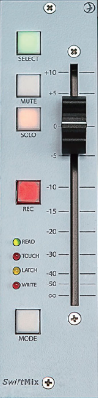 自动化推子可通过以太网络连接电脑,轻松控制 DAW数字音频工作站软件,以适应现代化的音频工 作流程。包含SwiftMix™推子模块和SwiftMix™总线 控制模块。