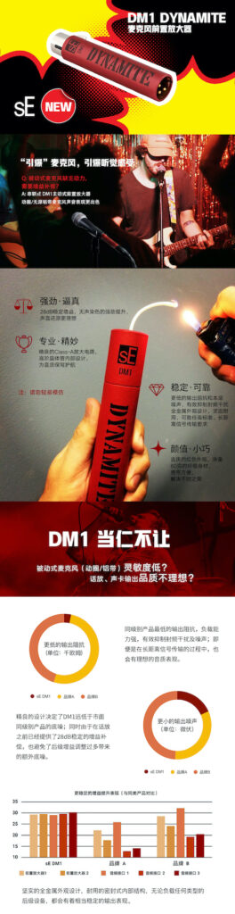 “sE DM1 DYNAMITE就像是哈利波特世界里的神奇魔法棒, 它可以随意增减麦克风后级的 输入增益,并且你可以将它放 置在任何你觉得合适的地方”