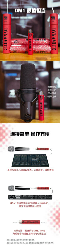 需要注意的是:由于DM1并没有集成供电模块因此需要后级提供幻象电源以确保其正常工作。