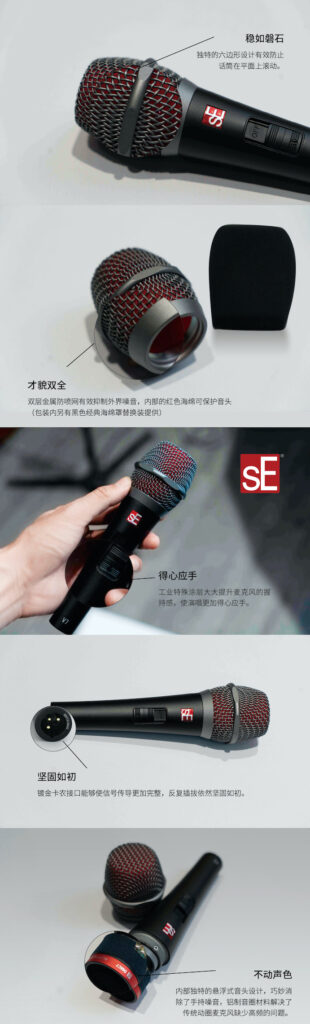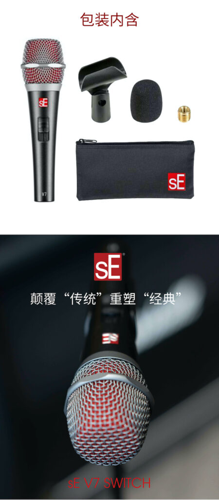 V7 SWITCH配备的专利防震架有效地避免音头的机械震动,与同类麦克风相比,将手持噪音降至最低。这意味着你可以在舞台上自由地走动,而不用担心隆隆声、爆破声或其他杂音出现。
