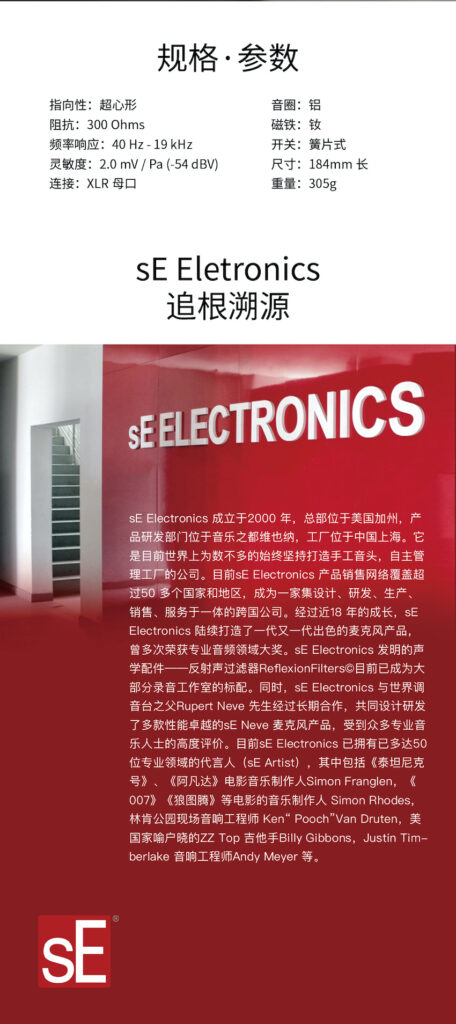有效减少不必要的风噪和爆破音。如果您不喜欢我们时尚的“sE红色”或不适用于广播场景,我们为您准备了一枚备用的黑色防风罩。