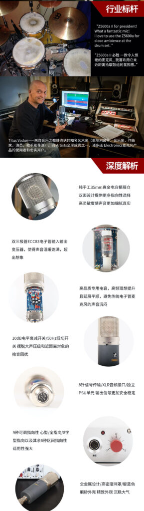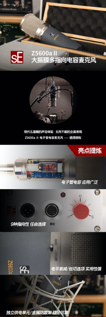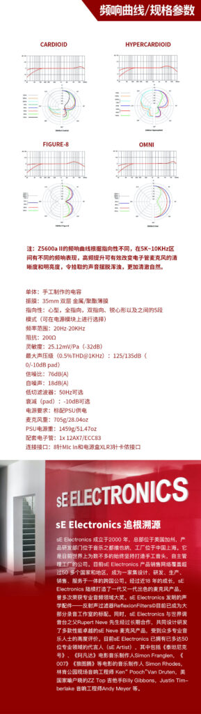 - 指向性:心型,全指向,双指向以及以上模式之间的6段模式(可在电源模块上进行选择)
