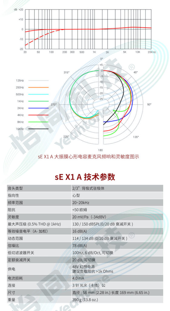 - 最大声压级 (0.5% 失真度):130 / 150 dBSPL(0/20 dB 衰减开关)